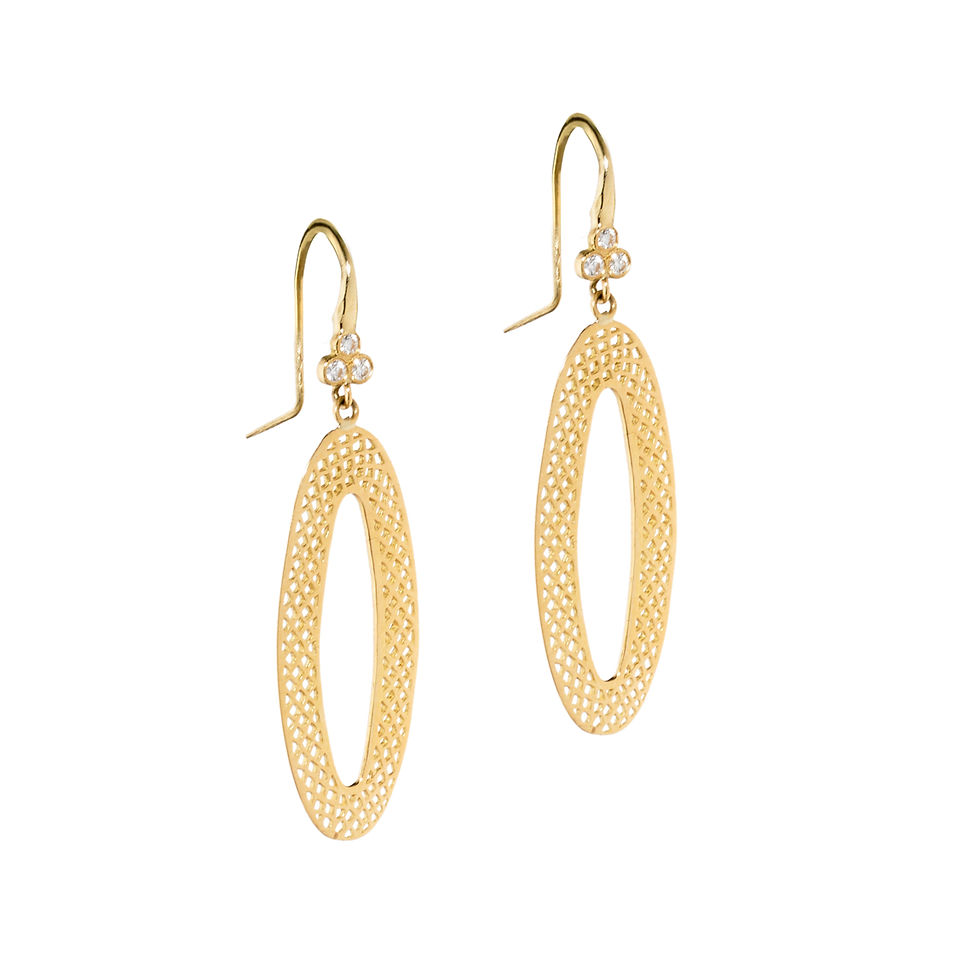 18KYG & Oxidized Silver & White Topaz Earrings